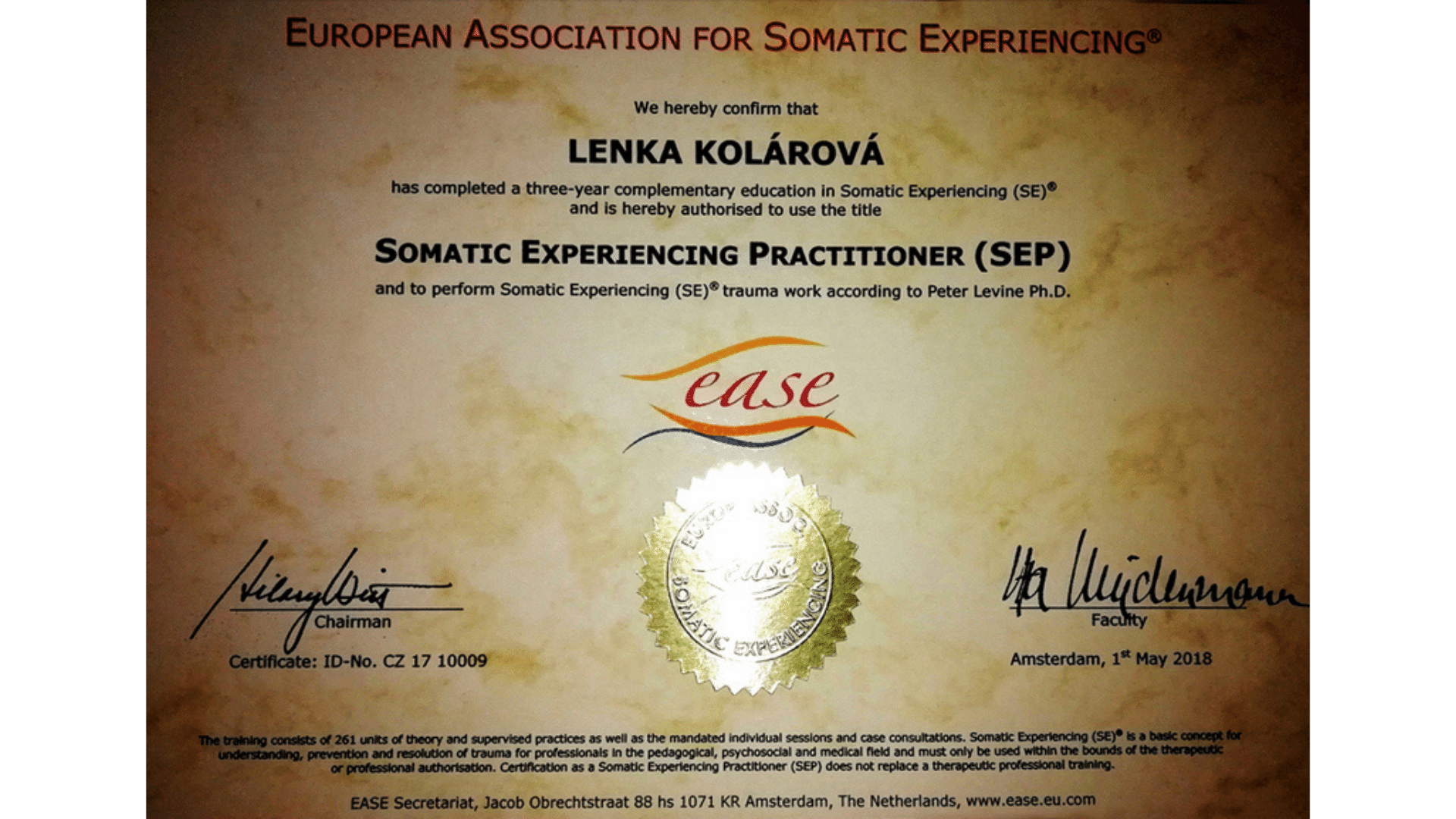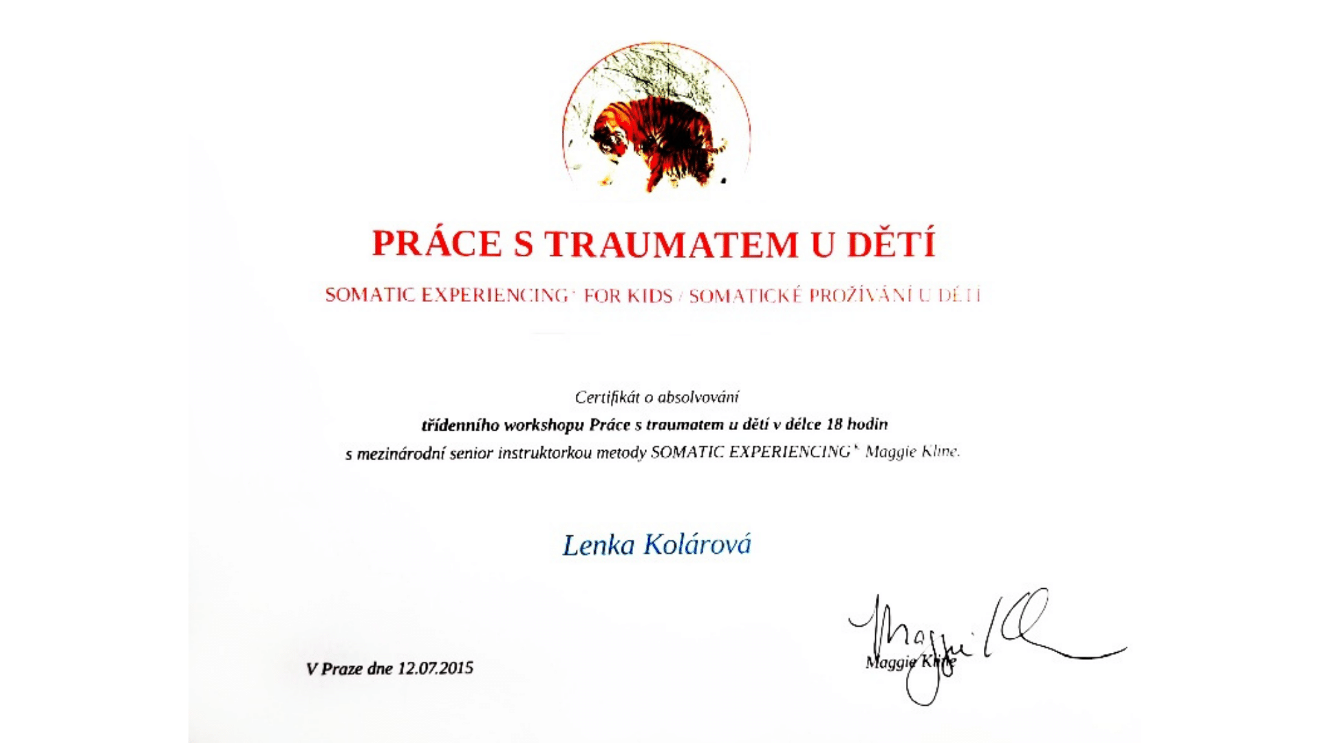 Prošla jsem tříletým výcvikem v metodě Somatic Experiencing® podle Petera Levina. Tahle metoda mě oslovila svou jemností a schopností pomáhat lidem znovu najít kontakt se svým tělem, zdroji a nervovým systémem – bez nutnosti znovu prožívat bolest.