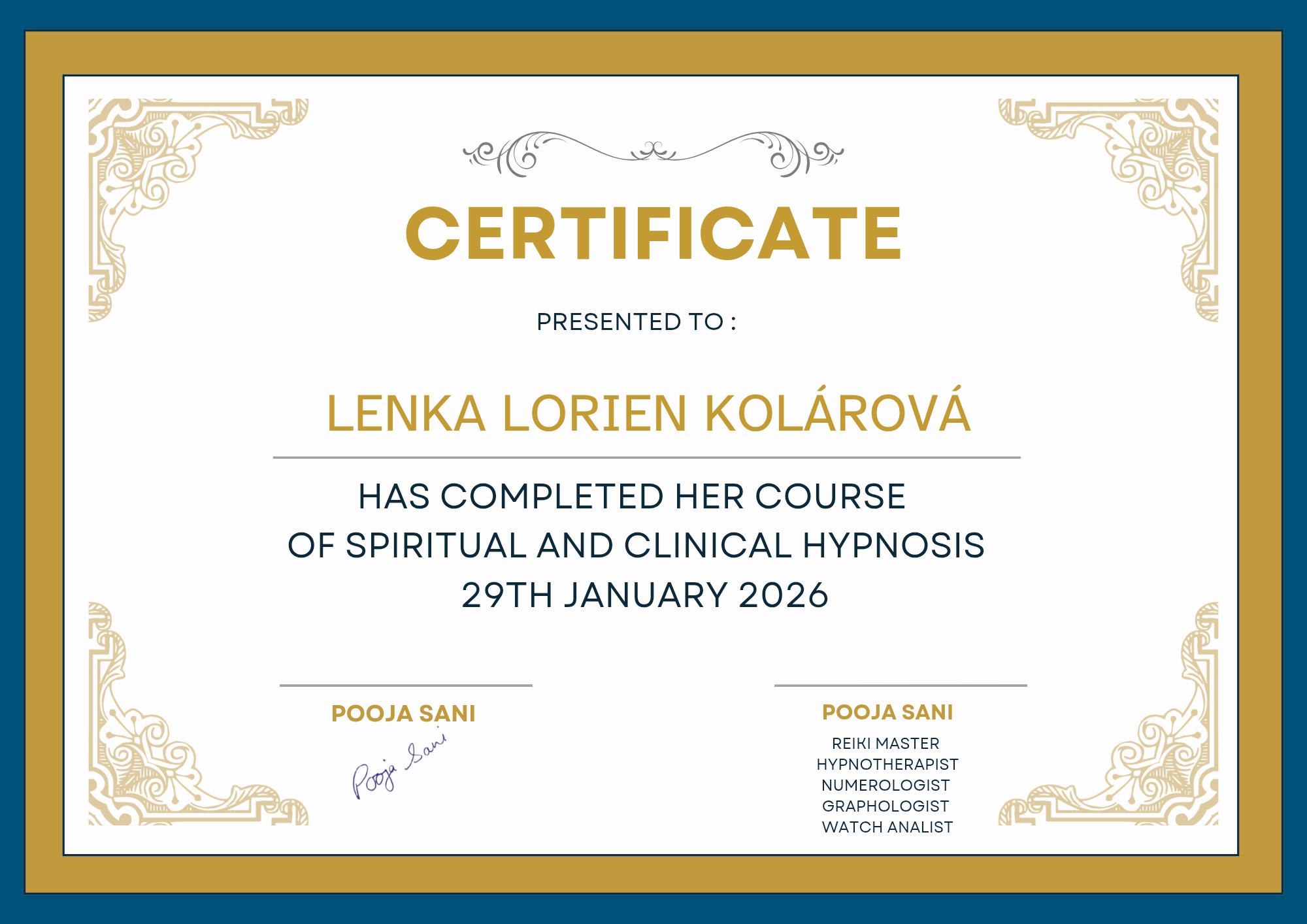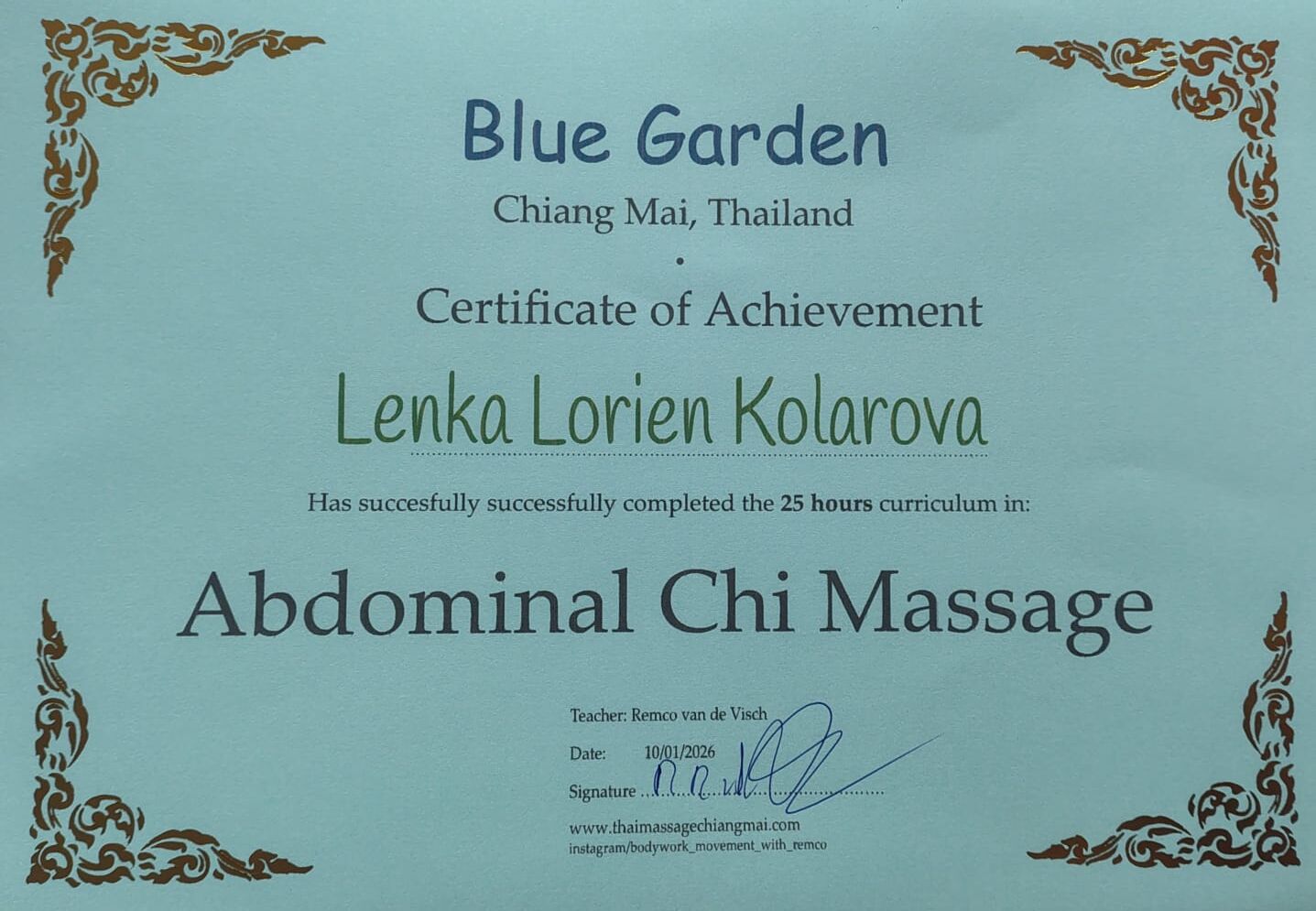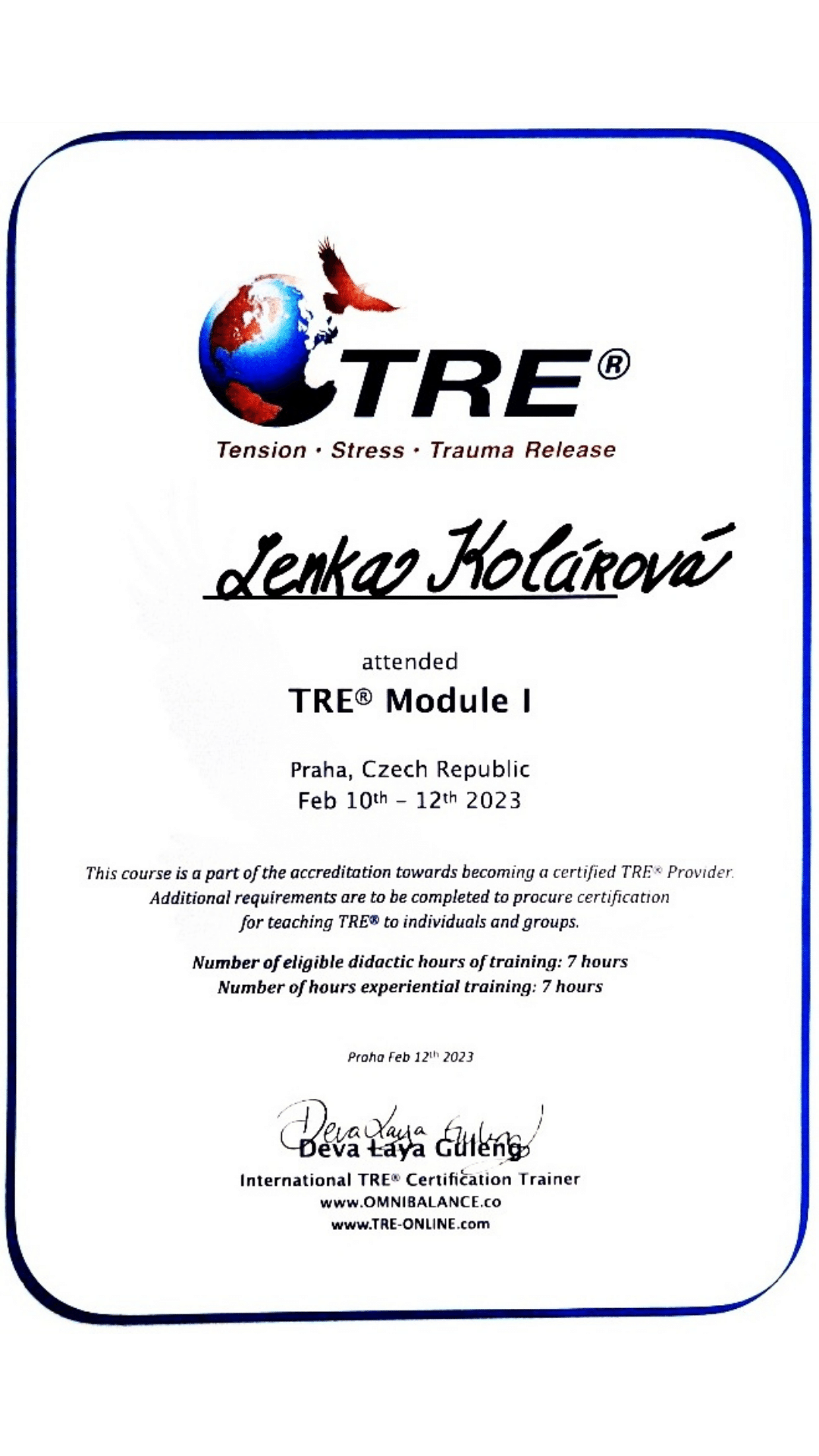 Vzdělání jsem získala na britské škole biodynamické kraniosakrální terapie, kde mě vedli zkušení učitelé a osteopaté. Během dvou let jsem se naučila vnímat tělo, jeho rytmy a podporovat přirozené samouzdravovací procesy.